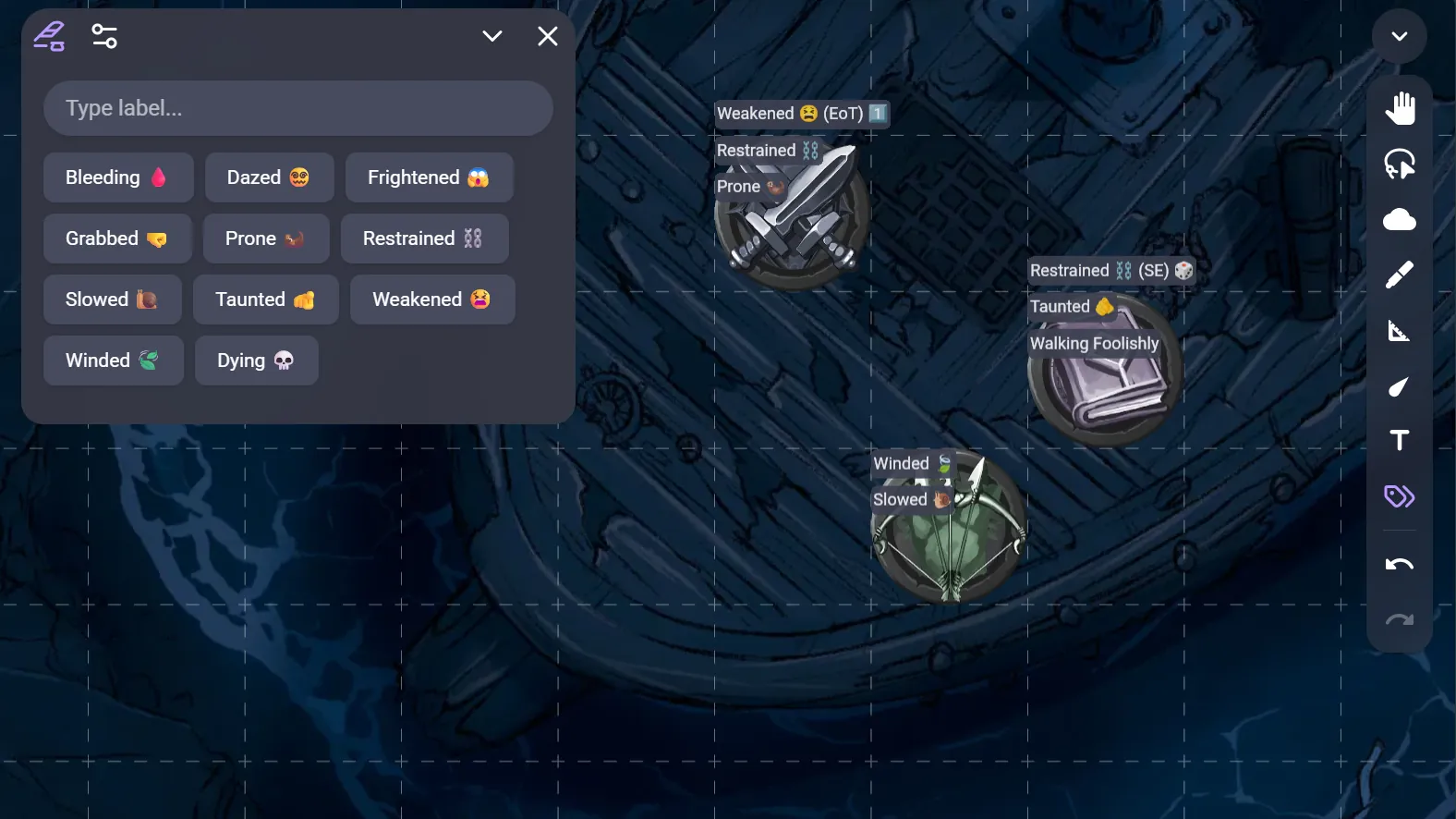 Click on a token to apply the label from the labels menu. The label will be attached to the token and positioned as specified in the extension's settings but will not scale with the token. You can reorganize a token's labels by clicking on it while the "Type label..." field is empty.